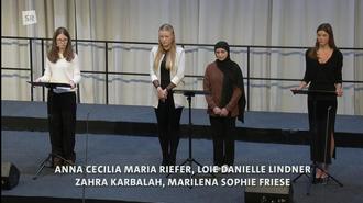 Unsere Schülersprecherin Zahra Karbalah bereicherte das Rahmenprogramm mit einem eindrucksvollen Vorlesebeitrag, der große Anerkennung fand. Im Anschluss tauschten sich die Schülerinnen und Schüler mit der Landtagspräsidentin Heike Winzent aus. Bereits am Vormittag besuchten die Schülerinnen und Schüler die Synagoge in Saarbrücken, wo sie ebenfalls an der Gedenkveranstaltung „Klangstele“ der christlich-jüdischen Arbeitsgemeinschaft Saar teilnahmen und diese aktiv mitgestalteten.