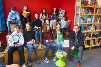 Auch im aktuellen Schuljahr hatte sich das Albert-Einstein-Gymnasium am Franz-Schlehofer-Buchprojekt der Union Stiftung beteiligt und nun konnten sich die Schüler über viele neue Bücher für ihr Lesestübchen freuen. Die Schülerinnen und Schüler, die sich mit Deutschlehrer Felix Blaß um das Lesestübchen kümmern, durften die Bücher auspacken und präsentieren. Das Projekt geht auf eine Idee des im Jahre 2016 verstorbenen Vorsitzenden der Union Stiftung, Franz Schlehofer, zurück. Wie in den Jahren davor durfte die Schule die Auswahl selbst treffen und konnte dadurch explizit auf die Interessen ihrer Schülerinnen und Schüler eingehen. Danke an die Union Stiftung. Mit dem Buchprojekt will die Union Stiftung einen Beitrag zur Leseförderung saarländischer Schülerinnen und Schüler leisten. Dr. Gerd Brosowski, Vorstandsmitglied der Union Stiftung, betreut das Buchprojekt ehrenamtlich. Die Anschaffung der Buchpakete findet in Kooperation mit lokalen Buchhandlungen statt.