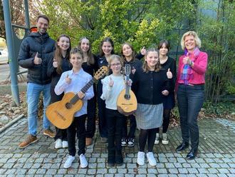Unsere Dirigentin und Gitarren-und Mandolinenlehrerin Monika Beuren bereitete 5 ihrer SchülerInnen auf das 1. Wertungsspiel vor.