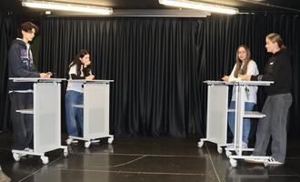 Im Wettbewerb in der Sekundarstufe II debattierten Milla Krings, Lena Rupp, Sophie Biewer (alle Klassenstufe 11) und Noel Hahn (Klassenstufe 10). In dieser Altersgruppe setzte sich Milla Kriegs als Siegerin durch.