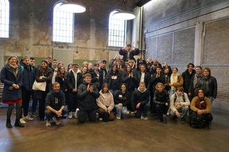 Gestärkt machten sich alle gemeinsam auf zur Völklinger Hütte. In kleinen deutsch-französischen Gruppen bekamen die Schülerinnen und Schüler Beobachtungsaufträge zu ausgewählten Filmen. Gemeinsam formulierten sie ihre Beobachtungen und Eindrücke in beiden Sprachen. Zwischendurch stärkten sie sich bei einem gemeinsamen Mittagessen und die Schülerinnen und Schüler hatten die Gelegenheit, noch mehr mit ihren Austauschpartnern ins Gespräch zu kommen.