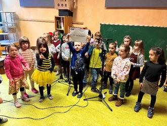 Bildunterschrift: KITA-Kinder beim Einsingen des neuen Songs