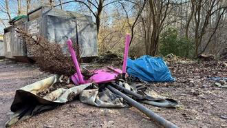 Aufräumarbeiten am Dienstag am Container Standort Wadgassen Sportplatz