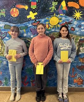 Deshalb beteiligten sich auch in diesem Schuljahr Schülerinnen und Schüler der vierten Klassen der Grundschule Hostenbach-Schaffhausen am Lesedino. Innerhalb der Klassen wurden drei Klassensieger gekürt: Emelie Angel (Klasse 4.1, Bild links), Ella Löwenbrück (Klasse 4.2, Bild rechts) und Mia Zimmer (Klasse 4.3, Bild Mitte ).