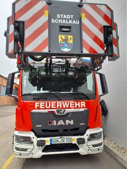 Anfang April konnten wir unsere neue Drehleiter abholen.