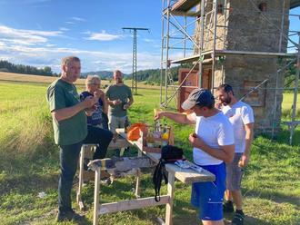 Mitte September konnten wir auch hinter die Erneuerung des Außengeländes einen Haken setzen. In den nächsten Wochen folgt auf dem Außengelände noch das Aufstellen einer überdachten Sitzgruppe sowie eine Informationstafel mit Gebietskarte. Im Innern wird eine Mini-Ausstellung Informatives zum Leben an der Grenze der drei Dörfer Emstadt, Truckendorf und Görsdorf vermitteln. Auf diesem Weg möchte ich mich schon einmal bei Horst Geiger aus Emstadt, der sehr viel Bildmaterial und Daten zur Verfügung stellte; und Günter Hofmann aus Görsdorf bedanken. Beide haben sich persönlich die Zeit genommen mir Fragen zur Grenze zu beantworten und einiges an Hintergrundwissen mitzugeben. Viel Material bot außerdem die Ortschronik der drei Dörfer und die Ausstellung der Begegnungsstätte Innerdeutsche Grenze in Neustadt bei Coburg, deren Inhalte teilweise auch in unsere Informationstafeln eingeflossen sind. Wenn die letzten Korrekturen abgeschlossen sind, können die Ausstellungstafeln in Druck gehen. Sie sind nahezu fertig und alles soll dieses Jahr noch erfolgreich abgeschlossen werden.