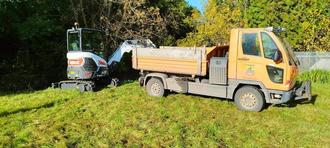 Bagger und Multicar des Bauhofs der Stadt Schalkau beim Einsatz für unsere Bürger in Bachfeld