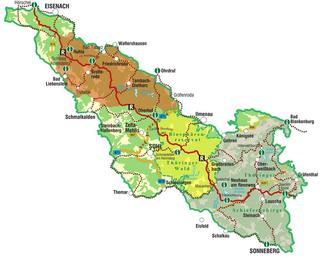 R.K.: Der Naturpark schließt den Thüringer Wald sowie Teile des Thüringer Schiefergebirges und der Vorländer, wie der Schalkauer Muschelkalkplatte ein. Das Gebiet erstreckt sich keilförmig von Sonneberg und Saalfeld im Südosten bis Eisenach im Nordwesten. Mit einer Größe von über 223 800 Hektar ist es die größte Nationale Naturlandschaft Thüringens.