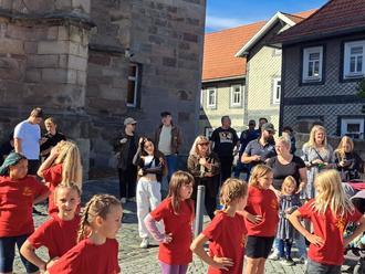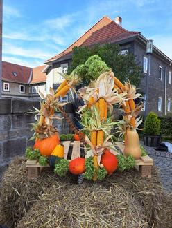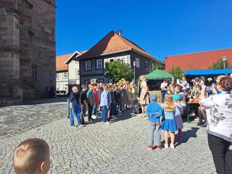 Nach dem Gottesdienst am Vormittag bewirteten am Nachmittag mehrere Vereine der Stadt die Gäste auf dem Marktplatz. Sie hatten ihre Marktbuden wie immer liebevoll geschmückt. Zur Eröffnung sang die Musik-AG der Gemeinschaftsschule unter der Leitung von Frau Schwesinger herbstliche Lieder. Danach unterhielt der Leierkastenmann Mr. Evergreen aus Erfurt die zahlreichen Besucher. Jessica Müller hatte mit den Kulturkids Tänze eingeübt, die sie unter großem Beifall vorführten.