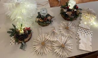 Zur Einstimmung auf die kommende Weihnachtszeit, hatte die AGATHE-Beraterin Christina Reuther die Senioren zu einem Bastelnachmittag ins Schalkauer Rathaus eingeladen. Kaum angekommen, waren die Senioren nicht mehr zu bremsen und legten mit viel Begeisterung los. Egal ob weihnachtlich gestaltete Kerzenlichter, Gestecke, Sterne aus alten Buchseiten oder Engel aus Korken, für jeden Geschmack war etwas dabei. Der Kreativität waren dabei keine Grenzen gesetzt. Jeder ließ seiner Phantasie freien Lauf und es kamen wunderschöne Dekorationen zustande. Neben basteln und kreativ sein wurde sich bei Kaffee und Süßigkeiten über alte Zeiten ausgetauscht.