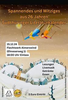 Spannendes und Witziges aus 26 Jahren Südthüringer Literaturkalender. Im Rahmen der "Lesereihe 2024" des Vereins stellen Heidi Büttner, Holger Uske und Thomas Schwämmlein alte und neue Geschichten aus dem Thüringer Literaturkalender vor und flechten Anekdoten zu ihrer Entstehung und/oder Wirkung mit ein. Die musikalische blueshaltige Umrahmung obliegt Franz Bäz und Angelika Schiekel.