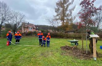 Ein besonderer Dank geht an den Schwimmbadverein für die Bereitstellung des Geländes und die Unterstützung, an die Feuerwehr für ihren Einsatz sowie an die Jugendfeuerwehr für das fachkundige Angießen des neu gepflanzten Baumes. Ihr Engagement hat maßgeblich zur Veranstaltung beigetragen. Die Roteiche wird nun auf dem Schwimmbadgelände wachsen und gedeihen, genau wie unsere Kinder. Mit ihrer Fähigkeit, auch auf weniger optimalen Standorten gute Wuchsleistungen zu zeigen, steht sie symbolisch für die Anpassungsfähigkeit und das Potenzial unserer Jüngsten. Wir freuen uns darauf, in den kommenden Jahren das Wachstum sowohl des Baumes als auch unserer Kinder zu beobachten und zu begleiten.