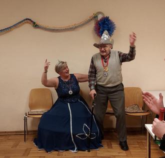 Der Höhepunkt war der Besuches des Prinzenpaares zusammen mit einigen Tanzmariechen und mehrerer Mitglieder des Elferrates. Sie legten nochmal eine flotte Sohle aufs Parkett. Auch die Senioren ließen sich nicht lumpen und hatten sogar den "Holzmichel" in ihren Reihen.