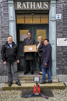 Die Stadt Schalkau hat durch Bürgermeisterin Ute Hopf sowie der für die Kasse und Versicherung zuständigen Mitarbeiterin Madlen Werner dieses LED-Beleuchtungssystem im Wert von ca. 1.100 EUR kostenfrei durch Nicolai Gubo und Dieter Jagiella von der SV SparkassenVersicherung in Empfang nehmen können.