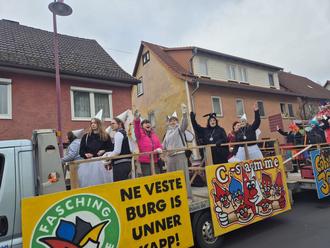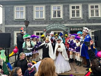Um 13:30 Uhr zog der Zug mit allerhand Kamelle, Musik und Heiterkeit durch unsere Kleinstadt. Viele Besucher feierten mit uns an den Straßen die 5. Jahreszeit. Am Rathaus übergab unser Bürgermeister Mark Schwimmer das Zepter an die königlichen Hoheiten Katja und Marco. Neben unseren städtischen Vereinen, konnten wir in diesem Jahr über die Ortsgrenzen hinaus zudem Sonneberg, Coburg und Eisfeld als Teilnehmer Willkommen heißen.