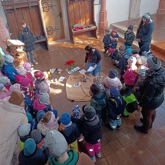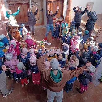 An Gründonnerstag machten sich alle Kinder und Erzieher des Diakonie-Kindergartens „Wirbelwind“ in Schalkau auf den Weg in die Johanniskirche. Unsere Erzieherin Tanja hatte eine kleine Osterandacht vorbereitet. Gemeinsam legten wir ein Bodenbild, und den Kindern wurde so auf kindliche Art und Weise der christliche Sinn des Osterfestes gezeigt und erklärt. Es wurde erzählt, gesungen und auch gebetet.