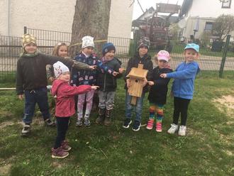Dann ging es ans „Werkeln“. Hand in Hand wurden mithilfe der Kinder zwei Nistkästen zusammengebaut. Alle waren ganz stolz auf das Ergebnis. Beide Nistkästen fanden einen sicheren Platz in unserem Garten, wo sie für zwei Meisen Paare einen Brutplatz bieten.