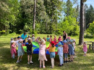 Die Seifenblasenmaschine sorgte für leuchtende Kinderaugen, mit dem Schwungtuch gab es mächtigen Spaß und beim Legen eines Naturmandalas kamen auch viele Kinder auf ihre Kosten.