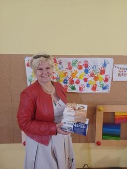 Auch am nächsten Tag ging es mit einer Überraschung weiter. Unsere Bürgermeisterin, Ute Hopf, hatte uns nämlich auch nicht vergessen. Sie kam auf einen kurzen Besuch im Kindergarten vorbei und hat unsere Gefriertruhe mit leckerem Eis am Stiel gefüllt!