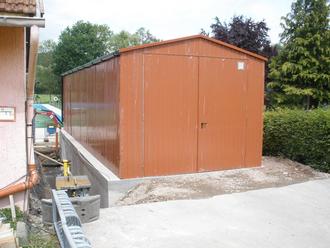 Eine Umbauung, in Form einer Blechgarage, für die Wasseraufbereitungsanlage wurde aufgestellt.