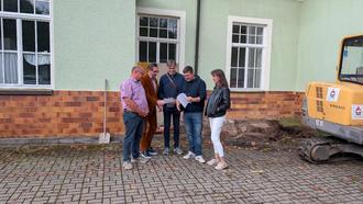 Baubesichtigung am 5.9.2025 - Teilnehmer Andreas Meusel (Stadt Schalkau), René Klinger (Medinos Klinik), Mark Schwimmer (Stadt Schalkau), Andreas Stauch (Medinos Klinik) und Anja Gelbricht (Stadt Schalkau) (v.l.n.r.)
