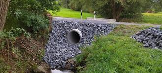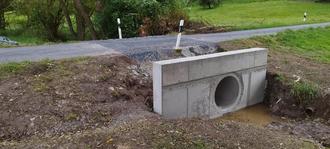 Einlaufseite des Durchlasses - Böschung und Fahrbahn müssen noch fertiggestellt werden