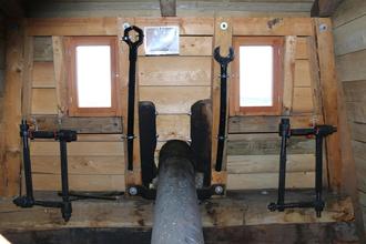 An der Stirnseite der Kuppel haben wir die Werkzeuge zum Befestigen und Nachspannen der Flügel angebracht. Hier kann man den Kraftaufwand erahnen, der für die Montage und Wartung der Flügel benötigt wurde.
