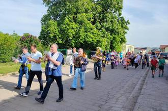 Begleitet von dem beliebten Neunheilinger Blasmusikern wurden sie von den zahlreichen Mitgliedern der Dorfgemeinde und ortsnahen Besuchern empfangen.