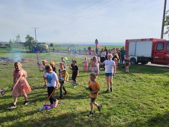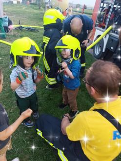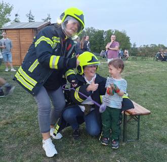 Zudem hatten die Kinder beim Löschen mit dem Feuerwehrschlauch und dem Ankleiden der Feuerwehrausrüstung riesigen Spaß. So mancher Zwerg wird sich sicher später in der ortsansässigen Jugendfeuerwehr wiederfinden.
