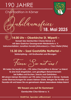 Dass dies in Körner bis heute gelungen ist, möchte der Chor gebührend feiern.
