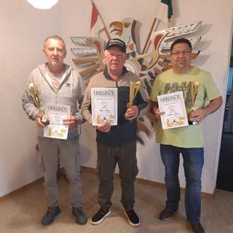 v.l.: H. Harnisch (Neunheilinger Schützenverein 2001 e.V.), F. Engelhardt (Schützengesellschaft Schlotheim 1848 e.V.) und H-P. Roth (Schlotheimer Schützenverein e.V.)