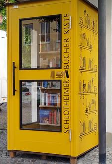 In Zusammenarbeit mit der Physiotherapie Sacher, die ihr 30-jähriges Jubiläum zum Anlass nahm, einen Teil der Jubiläumsspenden in das Projekt zu investieren, sowie der Druckerei Erdenberger, der Tischlerei Beck und der Stiftung zur Erhaltung und Entwicklung der Infrastruktur in Schlotheim, wurde die Bücher-Kiste realisiert.