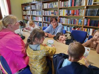 - Bibliotheksbesuch: Hier konnten alle Kinder, wenn sie wollten, sich in der Bibliothek bei Frau Koch anmelden und auch schon ein Buch ausleihen. Frau Dölle hatte bereits Karten ausgegeben, auf denen die Kinder nachweisen können, wie viele Bücher aus der Bibliothek sie gelesen haben. Wenn drei Bücher bis zur großen Auslosung gelesen wurden, winken viele schöne Preise für die kleinen und großen Bibliotheksbesucher.