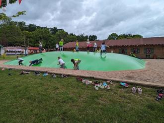 Dort angekommen wurden wir gleich von einem rieisgen Hüpfkissen begrüßt. Hier konnten wir uns nach Herzenslust austoben.