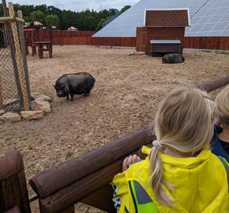 So konnten wir uns viele große und kleine Tiere auf dem Kinderbauernhof anschauen, wie beispielsweise die Wollschweine Heidi, Margot und Penelope.