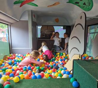 Dann führte uns unser Weg zu einem tollen Spielplatz mit vielen Rutschen und einem echten Spielbus.