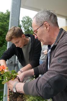 Im AWO Seniorenwohnpark Schlotheim verschönerten die Jugendlichen gemeinsam mit den Bewohnerinnen und Bewohnern die Außenanlagen. Balkone und Eingangsbereich wurden neu bepflanzt, eine Holzhütte abgeschliffen und die Hochbeete frisch gestrichen. Nach den Tätigkeiten genossen die jungen Helfer ein gemeinsames Mittagessen, um den Tag entspannt ausklingen zu lassen.