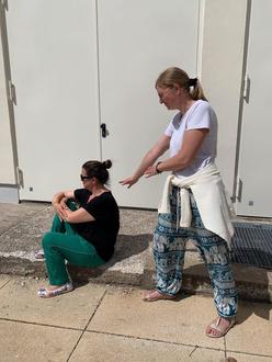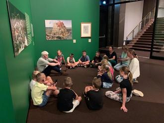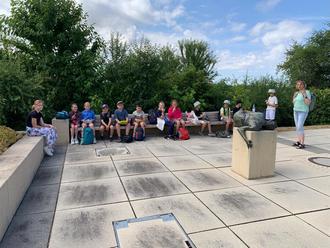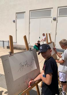 Noch ein Stück Fußweg und wir standen vor dem beeindruckenden Gebäude des außergewöhnlichen Museums. Bis alles organisiert war, Anmeldung und Kartenkauf, machten es sich die Kinder auf den Bänken gemütlich und nahmen ihr zweites Frühstück ein. Einige waren auch sehr interessiert an den Plastiken, die auf dem Gelände stehen, und haben diese zum Teil bis ins kleinste Detail untersucht. Sie hatten jedenfalls Spaß.