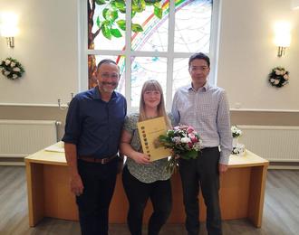 Bürgermeister Blankenburg überreichte ihr aus diesem Grunde am 31. Juli 2025 das Prüfungszeugnis und gratulierte zur erfolgreich bestandenen Prüfung.
