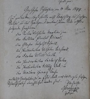 | Zu gedenken, daß heute auf Vorschlag des hiesigen Rathes und des Spritzen-Direktors Herrn Rode allhier folgende Personen | |