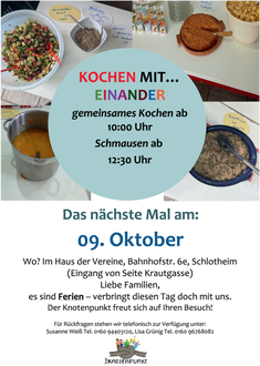 In den vergangenen Monaten ist im Knotenpunkt Neues entstanden unter anderem eine Handarbeits-AG mit dem Seilergymnasium, welche durch die Frauen aus dem Näh-Café durchgeführt wird. Auch zum Kinderfest am 20. September waren wir mit unserer Lese-Lounge vor Ort und es hat uns sehr gefreut, wie viel Interesse an den Büchern und dem Lesen bestand. Unter anderem findet jeden Dienstag das Näh-Café und alle 14 Tage mittwochs unser Kochen mit…Einander statt.