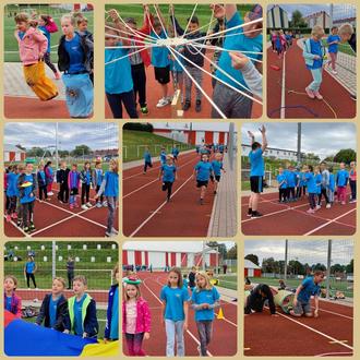 Endlich war es wieder soweit. Die Miniolympiade stand an und alle waren gekommen. Die SchülerInnen der Grundschule Schlotheim sowie die großen Gruppen der Kindergärten aus Schlotheim und Obermehler kamen am 29.09.2023 voller Vorfreude an den Sportplatz.