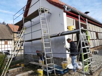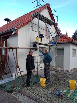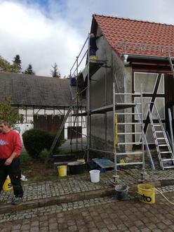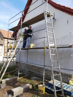 Wie immer, wenn es um Fassaden geht, ist unser bester Mann im Team natürlich Wolfram Kalb, der wie im 1. Bauabschnitt den Grundstein für das Gelingen legte.