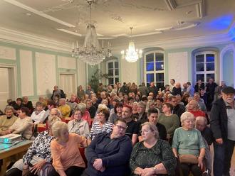 Nachdem alle verfügbaren Stühle aufgestellt waren, blieben für etliche Besucher nur noch Stehplätze und manch einer kam leider gar nicht mehr in den Saal.