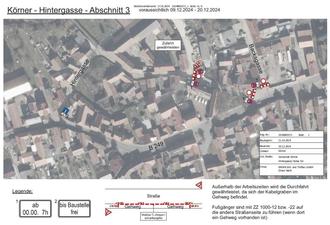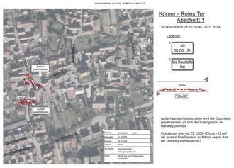 Grund der Sperrung: Verlegung Niederspannungskabel, Netcom und teilweise Straßenbeleuchtung
