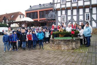 Zur Eröffnung des Adventskranzes auf dem Brunnen kamen Schüler der Grundschule Körner, die mit dem gemeinsam gesungenen Lied „Oh Tannenbaum“ symbolisch die Advents-und Vorweihnachtszeit eröffneten. In kurzen Worten dankte die Vereinsvorsitzende allen die bei den Arbeiten mitgeholfen hatten.