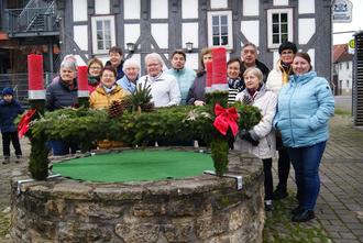 Die Idee den Brunnen am Nottertal in Körner einmal vor dem Weihnachtsfest mit einem Adventskranz zu gestalten kam den Mitgliedern des Landfrauenvereins mit ihrer Vorsitzenden Elvira Wichmann zu Beginn diesen Jahres. Einen Adventskranz auf dem Brunnen am Nottertal, daß ist ein Novum in Körner. Bisher hatten die Landfrauen immer in recht aufwendiger Kleinarbeit den Brunnen zum Osterfest gestaltet.