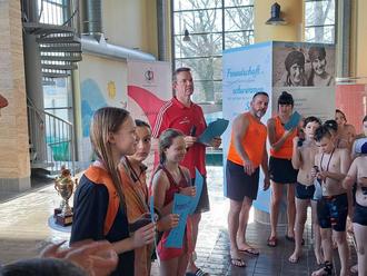 Über 8x25m Freistil siegte unsere Mannschaft zwar im Vorlauf, konnte im Finale dem besser besetzten Team des Tilesius-Gymnasiums jedoch nicht ganz folgen. Nach einem spannenden Rennen fehlten gute 4 Sekunden zur Pokalverteidigung. Dritter wurde das Gymnasium aus Lengenfeld unterm Stein.