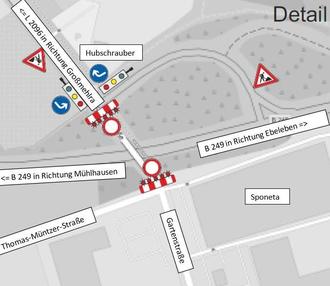 | -> | Zufahrt nach Schlotheim über die B 249 nur über die „Sorge“ möglich („Amtsstraße“ gesperrt) |