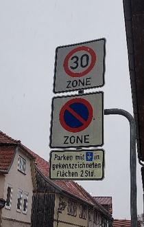 Das Parken ist nur in gekennzeichneten Flächen erlaubt. Diese finden sie auf dem Marktplatz hinter dem Rathaus und im Flachsmarkt. Dort darf mit sichtbar ausgelegter Parkscheibe zwei Stunden geparkt werden.